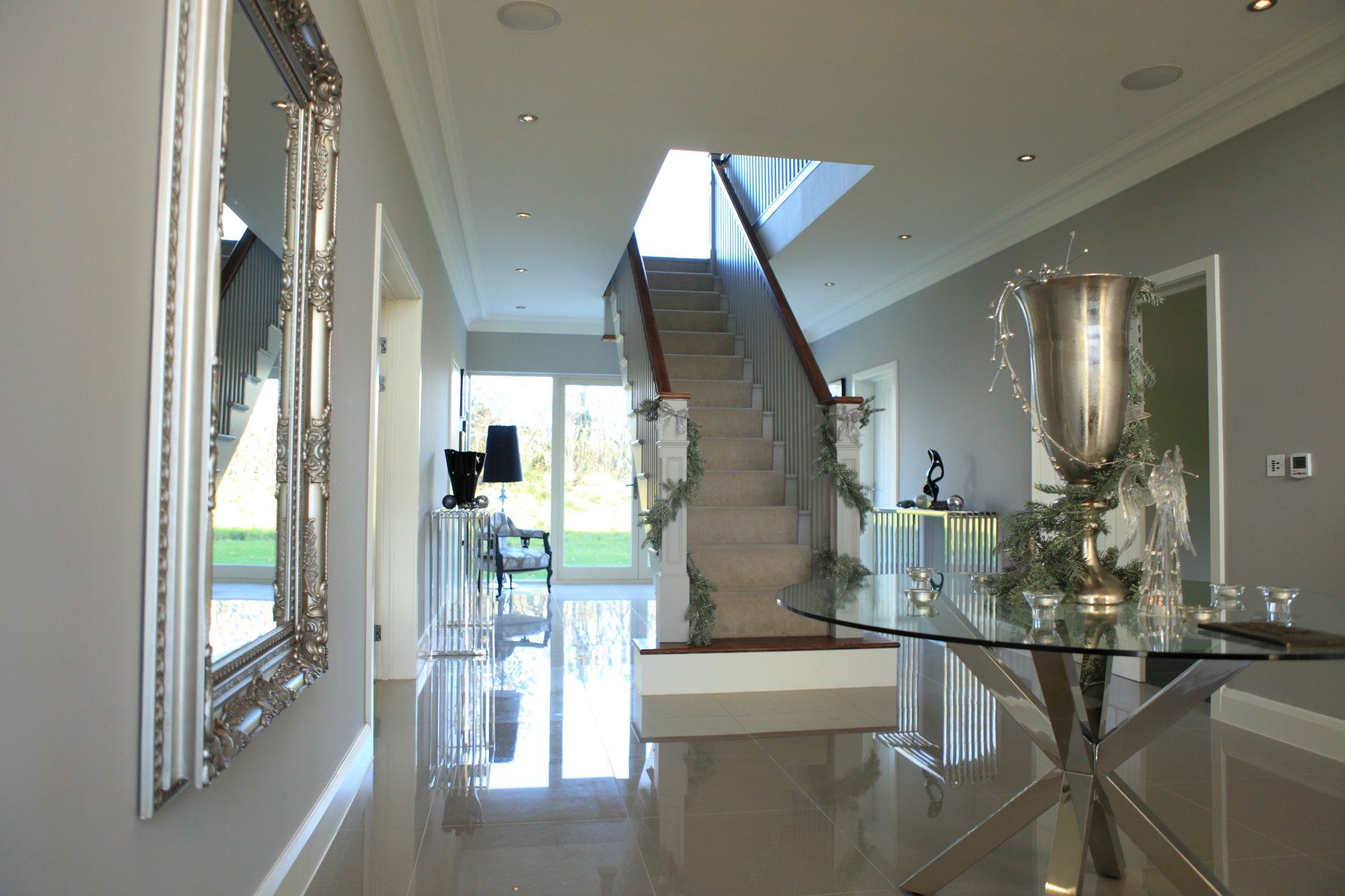 Afryn involved the demolition of a single detached bungalow dwelling and the erection of a bespoke single comprising in excess of 6200 sqft of internal space. The brief was set out to achieve a dwelling to be shared by a young family with autonomous and separate living quarters for the mother and father.