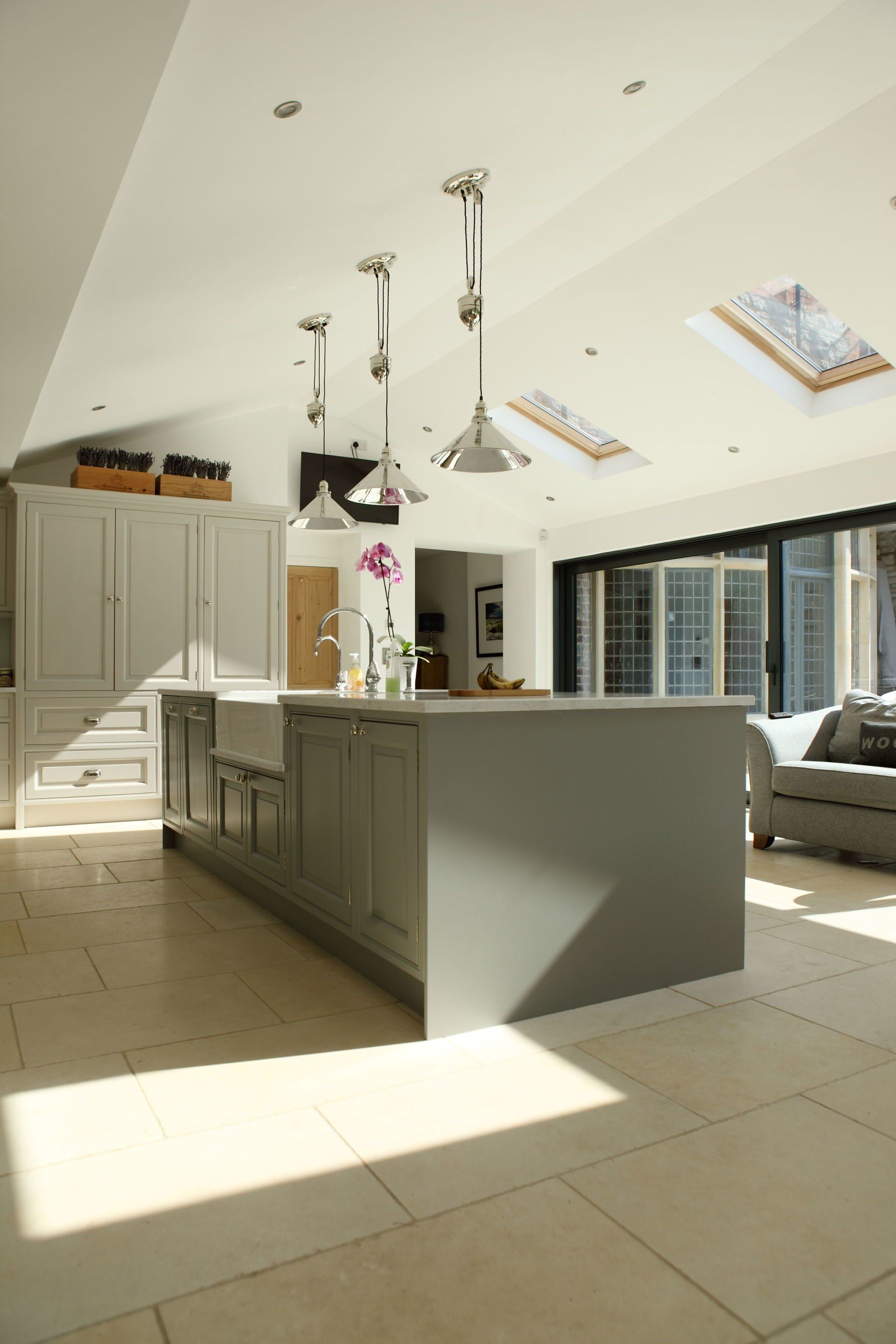 A kitchen, dining and informal living space befitting the quality of the existing reception rooms of the property was requested from the client. We enhanced the brief with the integration of the external and internal spaces via terraces and a design that connects both.